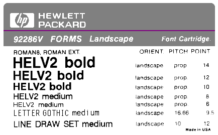 | Helv | 10 | Prop. | Upright | Bold | P | Roman-8 & Roman Ext. |