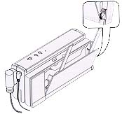 | Change Cartridge and Paper Feed lights are on. | Open the access door and gently push or tap the print cartridge and print cartridge cradle against the end of the printer. |