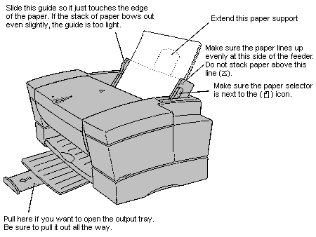 only those designed for this printer · Put one sheet of plain paper at the bottom of the stack to prevent misfeeds. · The chalky side should be toward you. |