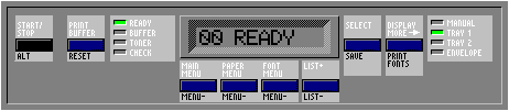 The selected emulation/mode is displayed with the ready status message. When you select IBM PPDS mode, [00 Ready PPDS] is displayed.